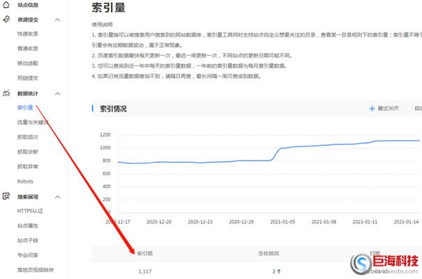3、選擇左邊的百度百度索引量,查看索引量數(shù)量的規(guī)則