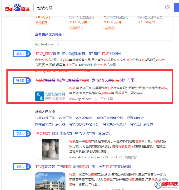 關(guān)鍵詞 ”包裝噸袋”優(yōu)化排名達(dá)標(biāo)案例