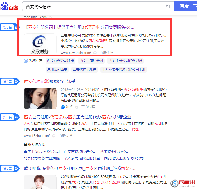 以上就是西安網(wǎng)站優(yōu)化巨??萍继峁┑慕诎咐?,更多關(guān)于“關(guān)鍵詞 ”西安代理記賬等”的相關(guān)效果,請聯(lián)系我們的在線客服,希望對你有所幫助。